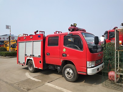 該消防車底盤主要參數:底盤型號為EQ1041DJ3BDC,由東風汽車股份有限公司生產,發動機功率為65千瓦,發動機排量為2.3L,國五排放,最大總質量為4495公斤,5檔變速箱,7.00輪胎,最高車速每小時90公里。麻雀雖但小五臟俱全,警燈警報、電氣系統、照明系統、供水系統、消防器材等一應俱全。
